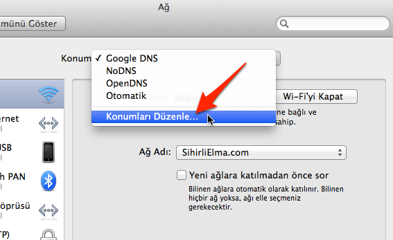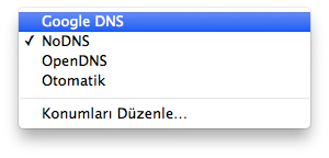 Google DNS’i kullanmaktan vazgeçmek ve varsayılan DNS’lerimizi kullanmak istersek tek yapmamız gereken Menü çubuğunda sol üstte yer alan Apple logosuna tıklayınca açılan menüdeki “Konum” kısayolu ile farklı bir konum seçmek. Böylece konumlarımız, dolayısıyla ayarlamış olduğumuz DNS sunucularımız arasında hızlı bir şekilde geçiş yapabiliyoruz 🙂