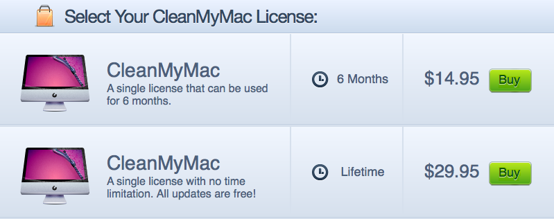 Ancak CleanMyMac uygulaması ne yazık ki ücretsiz bir uygulama değil 🙁 Bu sebeple DEMO sürümü ne yazık ki sadece 500MB’lık temizlik işlemi gerçekleştirebiliyor. Satın almayı düşünürseniz, “6 aylık” ve “sınırsız” olmak üzere 2 tip lisans mevcut.