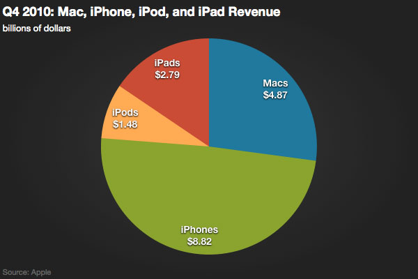 Cihaz üretimindeki darboğaz, beyaz iPhone 4’ün hala piyasaya sürülememesi, anten sorunları ve son olarak sözü edilen bazı cam çatlaması şikayetlerine rağmen, Apple geçtiğimiz sene aynı çeyrekteki satış rakamının %91 üzerine çıktı ve inanılmaz bir şekilde 14.1 milyon iPhone satışı gerçekleştirdi.