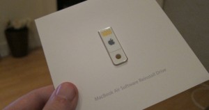 Bir diğer küçük ama güzel detay ise DVD sürücüsü olmadığı için MacBook Air ile birlikte verilen flash bellek. Bu flash bellek sayesinde sistemi geri yüklemek mümkün. Yani artık kurtarma DVD’si yerine ‘kurtarma flash belleği’ kullanılacak diyebiliriz MacBook Air’ler ile… 🙂