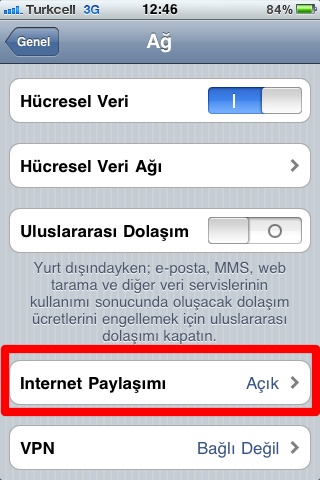 iPhone 4’um var ve 4.1 os yuklu jb’siz ancak ayarlar bolumunde internet paylasimi diye bi bolum yok. Naapmaliyim?