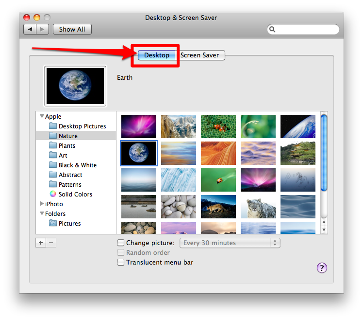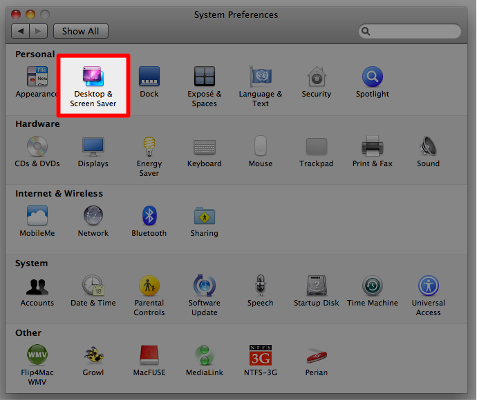 Apple menüsünden System Preferences’ı (Sistem Tercihleri) seçtikten sonra ‘Desktop & Screen Saver’ (Masaüstü ve Ekran Koruyucu) ikonuna tıklıyoruz.