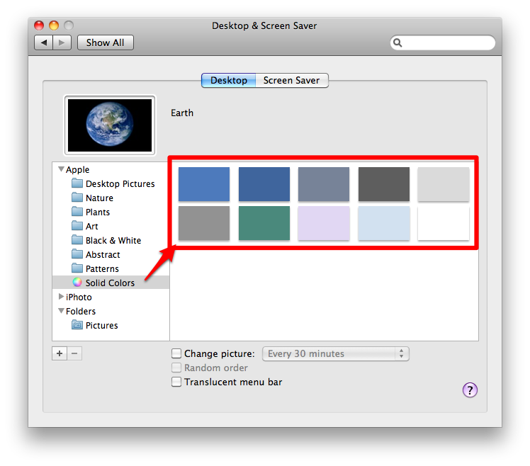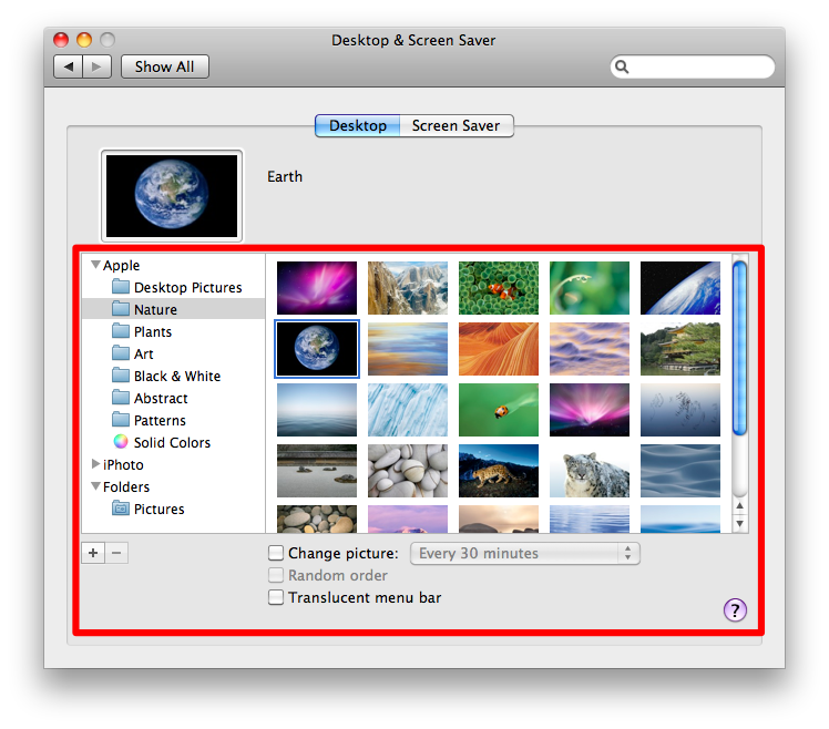 Mac’imizdeki küçük ama hoş özelliklerden birisine de burada değinmekte fayda var. Beğendiğimiz bir albüm içerisindeki fotoğrafların (örneğin aile albümü) masaüstümüzde belirli sürelerle değişmesini istiyorsak bunu yapmak çok kolay. Alt kısımda görünen ‘Change picture’ kutucuğunu işaretlediğimizde resimlerin istediğimiz sürelerde değişmesini sağlayabiliyoruz.