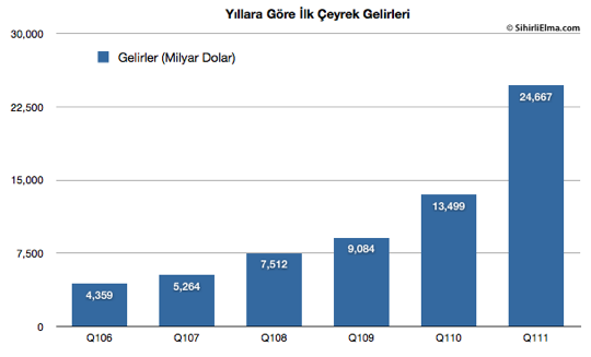 iPhone rekorlara doymuyor desek yanlış olmaz sanırım. Apple bu çeyreğinde elde ettiği gelirlerin yüzde kaçı iPhone’da olabilir sizce? %15? %30? %45? Tam %50! Yani Apple’ın 2011’in ilk çeyreğindeki tüm gelirlerinin yarısı iPhone’dan (satışlar, operatör anlaşmaları ve aksesuarlarından) geliyor. Buna App Store üzerinden indirilen uygulamalar dahil bile değil hem de!
