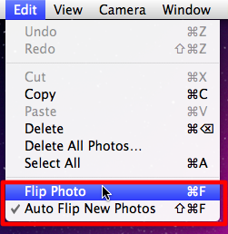 Edit menüsünden Flip Photo’yu tıklayarak ya da command-F kısayolu ile fotoğrafları anında çevirmek mümkün. Ya da bunu otomatik olarak seçip (Auto Flip New Photos) hiç uğraşmamayı da tercih edebiliyoruz…