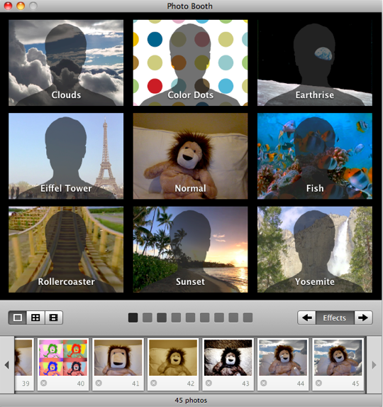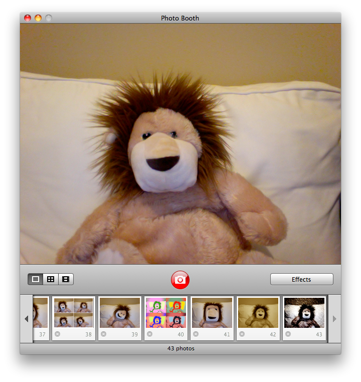iPad 2’de de artık standart uygulamaların arasına girmesinin ardından, Lion’da da yenilenen uygulamalardan bir tanesi de Photo Booth. Ancak yeni bir arayüz ve yeni efektler de getiren bu değişikliklere Lion lansmanından sonra değineceğiz… 🙂 Şimdilik sadece bir ekran görüntüsü paylaşmış olalım…