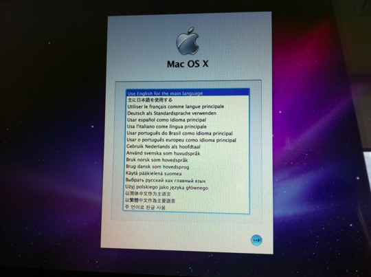 Os x 10.6 Usb diski oluşturdum. açılışta usb görüp onu açtım.Dil seçeneği geldi dil seçip bu ekranıda geçtim.