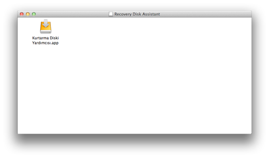 İndirdiğimiz DMG dosyası içerisinden çıkan “Kurtarma Diski Yardımcısı.app” uygulamasını çalıştırıyoruz.