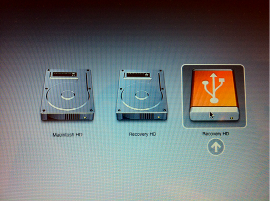 Bu ekranda, oluşturduğumuz “Recovery HD” diskini seçerek kurtarma diskini kullanabiliyoruz.