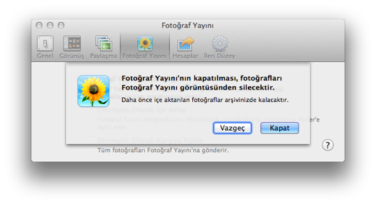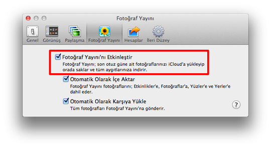 - Mac’imizdeki iPhoto içerisinden Tercihler -> Fotoğraf Yayını sekmesi altından,