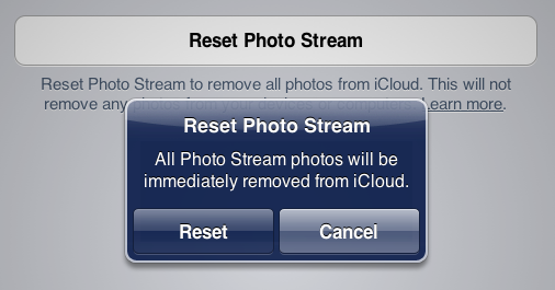 Karşımıza gelen ekranda “Reset Photo Stream” butonuna tıklıyoruz, ve onayımızın ardından iCloud üzerindeki Fotoğraf Yayını fotoğraflarımız silinmiş oluyor.
