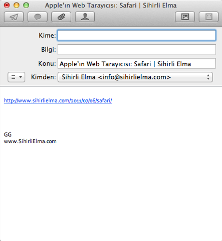 Gönderebiliyoruz elbette. Hem de Safari’nin muhteşem bir özelliği sayesinde: Okuyucu. Lion öncesinde Safari’yi ilk defa tanıtırken bahsettiğim Okuyucu (Reader) özelliği sayesinde sayfadaki içeriği çok daha sade ve şık bir şekilde arkadaşlarımıza e-posta olarak gönderebiliyoruz.