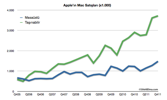 Ayrıca önemli bir detay daha, bu çeyrekte satılan Mac’lerin yarısı, yeni Mac kullanıcılarına, yani daha önce hiç Mac kullanmamış kişilere satıldı. Sihirli Elma’ya artık daha çok iş düşüyor diyebiliriz sanırım, her ne kadar ülkemizde rakamlar henüz bu kadar yüksek olmasa da… 🙂