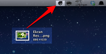 Droplr’ı çalıştırdığımızda menü çubuğuna ikonunu yerleştiriyor, ve bizi beklemeye başlıyor. Bir resmi paylaşmak istediğimizde bu resim dosyasını sürükleyerek Droplr ikonunun üzerine bırakıyoruz.