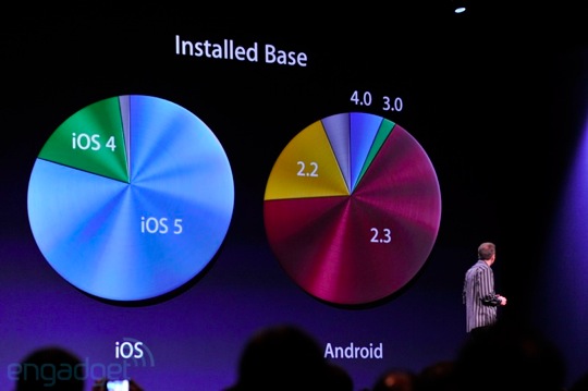 - iOS kullanıcılarının %80’i son sürüm olan iOS 5 kullanırken, Android’de ise bu oran sadece %7.