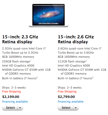 MacBook Pro da, küçük kardeşi gibi benzer şekilde güncellendi. Tahminlerin aksine incelmedi, DVD’si yok olmadı, SSD ile gelmedi. İşlemcilerin daha güncel bir seriye (Intel Ivy Bridge) yükseltilmesi, RAM’in daha hızlı hale gelmesi ve ekran kartının iyileştirilmesi dışında pek de dişe dokunur bir güncelleme yok diyebiliriz.