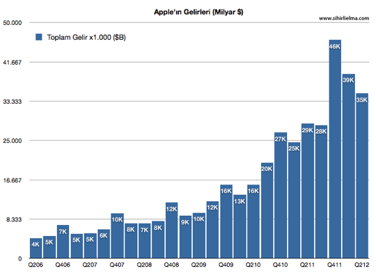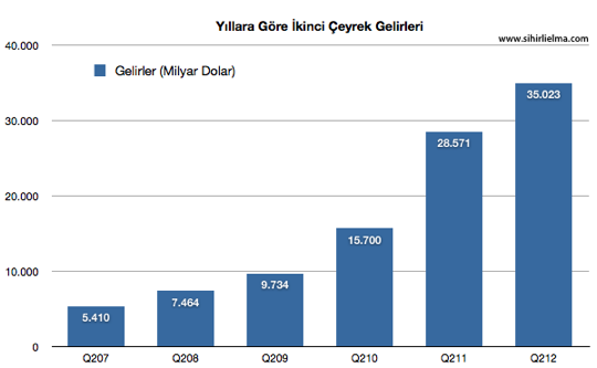 Apple biraz önce 2012’nin ikinci çeyrek sonuçlarını açıkladı ve bir rekor çeyreği daha geride bıraktı. Tarihindeki en iyi ikinci çeyrek sonuçlarını açıklayan Apple, bu çeyrekte 26 milyondan fazla iPhone, rekor bir şekilde 17 milyondan fazla iPad ve 4 milyondan fazla Mac satmış oldu.