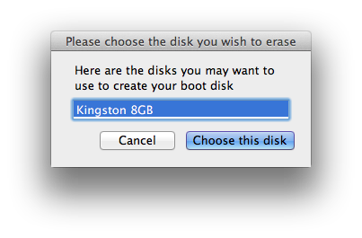 En az 8 GB’lık USB diskimizi Mac’imize takıyoruz ve “An 8 GB USB Drive”ı seçiyoruz.