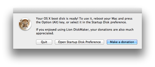 Oluşturma işlemi bende 10 dakikadan az sürdü. Ve işlem bittikten sonra Mountain Lion yükleme diskim hazır oldu… 🙂