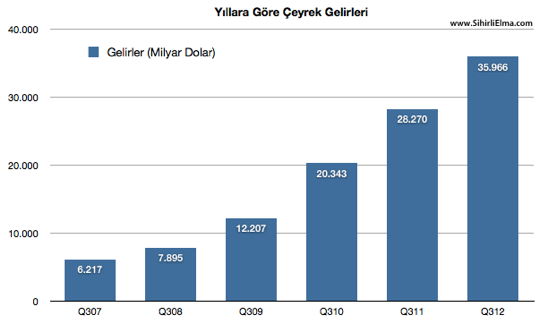 Apple bu çeyrek ile birlikte mali yılını sonlandırdı. 2012 mali yılı bitmiş oldu.