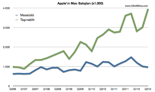 - Bu hafta içerisinde açıklanan yeni iMac, bu oranı belki biraz düşürebilir, ama MacBook’ların daha da dominant olacağı gerçeğini değiştirmesi zor gibi görünüyor. 🙂