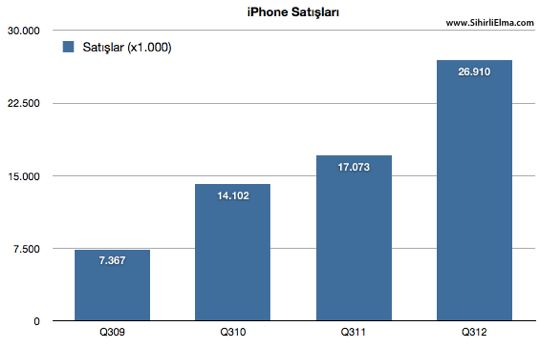 - Toplamda 26.9 milyon iPhone satılmış, geçtiğimiz seneye göre %57’lik bir artış var.