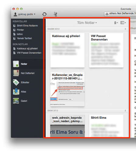 Eski görünümde hangi notun hangisi olduğunu karıştırıyor, aradığım notları bulmakta zorlanabiliyordum. Bir haftalık kullanımımda Evernote’un bu arayüzünün daha iyi olduğunu söyleyebilirim. Bakalım zaman geçtikçe daha da beğenecek miyim, yoksa eskisini arayacak mıyım? 🙂