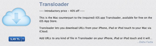 iOS uygulamasını yükledikten sonra, istediğimiz dosyaların Mac’imize indirilmesi için bir de Mac uygulaması indirmemiz ve çalıştırmamız gerekiyor. Bunun için Mac App Store’dan Transloader uygulamasını indiriyoruz.