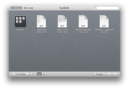 Mountain Lion ile birlikte artık iCloud üzerinde de bazı dosyalarımızı saklayabiliyoruz. (Örneğin TextEdit dosyaları) Böylece bu dosyalarımıza tüm Mac’lerimizin üzerinden kolayca erişebiliyoruz.