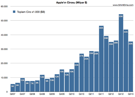 Apple’ın rekor kırdığı dönemler geride mi kaldı? Apple’ın cirosu ve karlılığı nasıl değişiyor? Yeni ürünler nerede kaldı? Ve belki de hepimizin merak ettiği “Apple 2013 sonunda nerede olacak?” ve benzeri sorulara bu yazıda yanıt vermeye çalışıyoruz. Apple’ın dün gece açıkladığı çeyrek sonuçlarına göz atıyor ve buradan bazı çıkarımlar yapmaya çalışıyoruz.