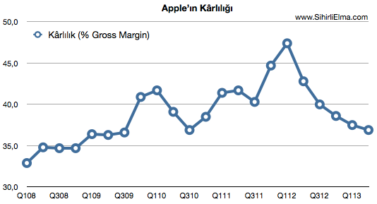 Apple’ın bu çeyrekteki performansını 1 cümlede özetlemek gerekirse şunu söyleyebiliriz: “Ciro sabit gidiyor, geçtiğimiz senenin aynı dönemine göre %1 arttı sadece, ancak karlılık geçtiğimiz seneye oranla düştü.”