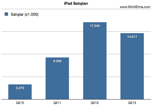 - iPad ilk defa bu sene bahar döneminde yeni ürün çıkartmadı. Satışlar geçtiğimiz seneye göre %14 düşük.