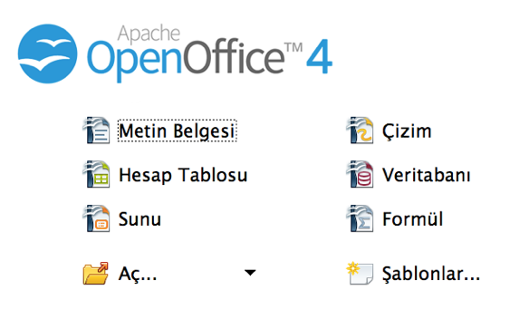 OpenOffice, aslında tek bir uygulama, fakat içerisinde bir çok farklı belge açabiliyor, bunlar da zaten bizim istediğimiz özellikleri içeriyor: