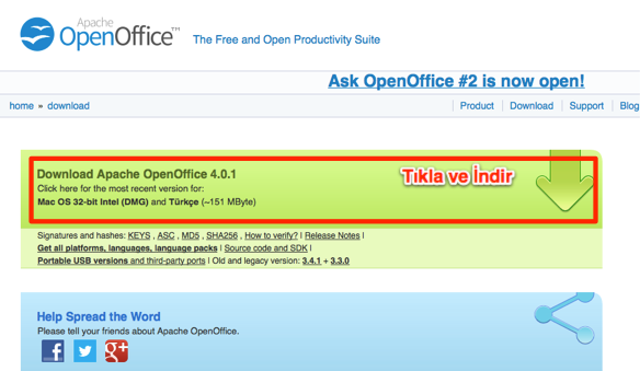 Yaklaşık 151 MB’lık bir paket olan OpenOffice’i kendi web sayfasından indirebiliyor ve kullanmaya başlayabiliyoruz.