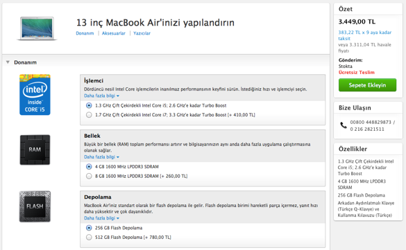 Yapılandırma seçeneklerini ve fiyatlandırma detaylarını görmek için siz de Apple Online Store’dan bir Mac seçtikten sonra yapılandırma tercihlerinizi belirleyebilirsiniz.