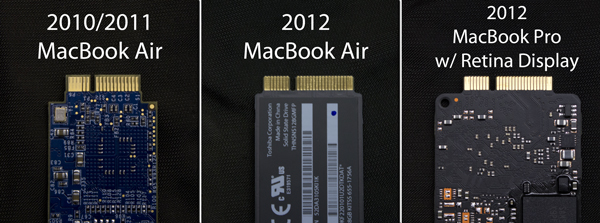 Son dönemde OWC gibi firmalar MacBook Air ve Retina Ekranlı MacBook Pro’ya özel, uyumlu SSD modülleri üretmiş olsa da, Apple’ın bu konuda bir standardı yok. Örneğin 2012 yılında kullanılan SSD’ler ile 2013 model MacBook Air’lerin SSD modülleri bile farklı.