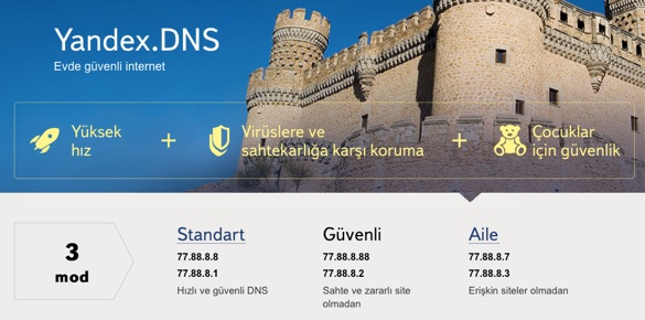 Bu yazının konusu olmadığı için detaya girmeyeceğim, ancak merak edenler Yandex DNS detay sayfasından bu DNS’lerle ilgili çok daha detaylı bilgilere göz atabilirler.