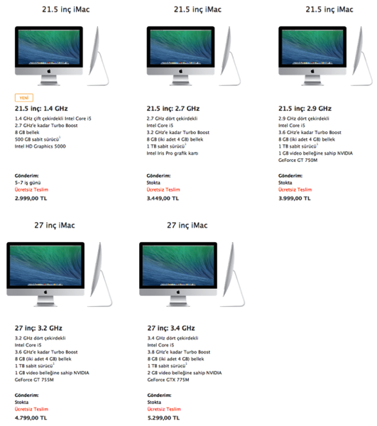 ABD’de 24 saat içerisinde gönderim yapılabilen yeni iMac, Türkiye’de ise bugünden itibaren 5-7 iş günü içerisinde temin edilebiliyor. Artık eskisi gibi uzun süreler beklemiyor olmamız gerçekten sevindirici. 🙂