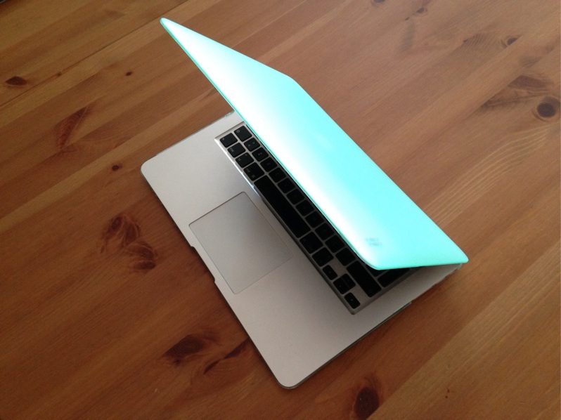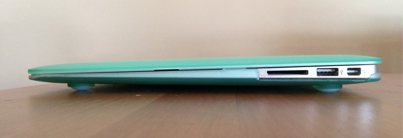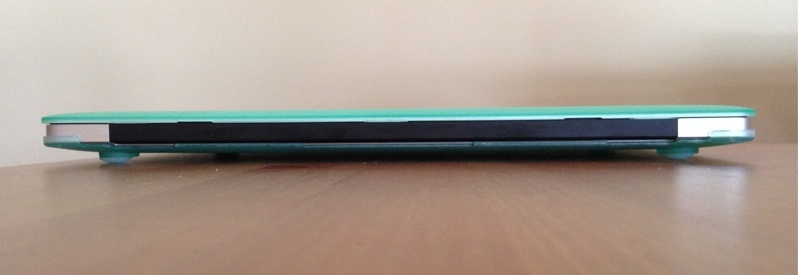 Aiino marka bu sert plastik koruma kılıfı, MacBook Air’imizi çizilmelere ve sürtünmelere karşı gayet güzel koruyor. Aynı zamanda da güzel renkleriyle hoş bir görünüm de sağlıyor. Ancak bir yandan da MacBook Air’imizi biraz kalınlaştırıyor ve biraz da ağırlaştırıyor.