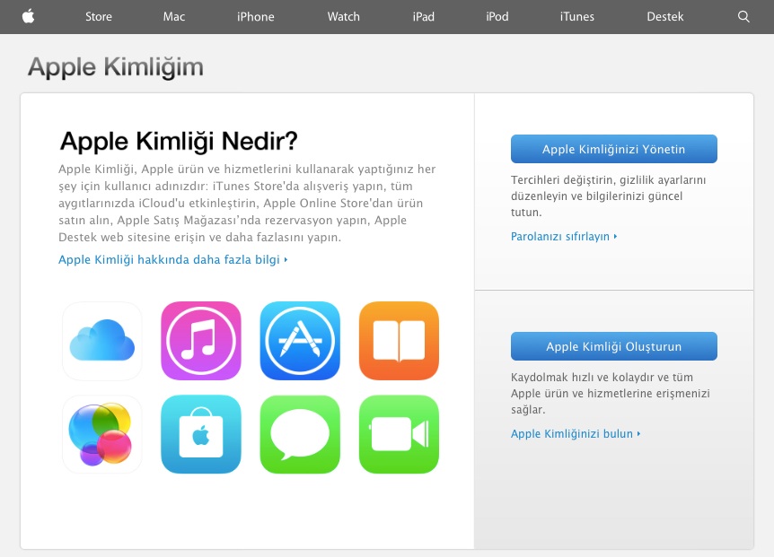 Apple’ın dünyasında var olmanın tek bir şartı var: Apple Kimliği (Apple ID). Apple kimliğimiz varsa her şeyi kullanabiliyoruz, Apple kimliğimiz yoksa neredeyse hiç bir şeye erişemiyor veya kullanamıyoruz. App Store, iTunes Store, Facetime, iMessage, iCloud, iPhone’umu Bul ve daha bir çok şeye açılan kapı Apple kimliğinden geçiyor.