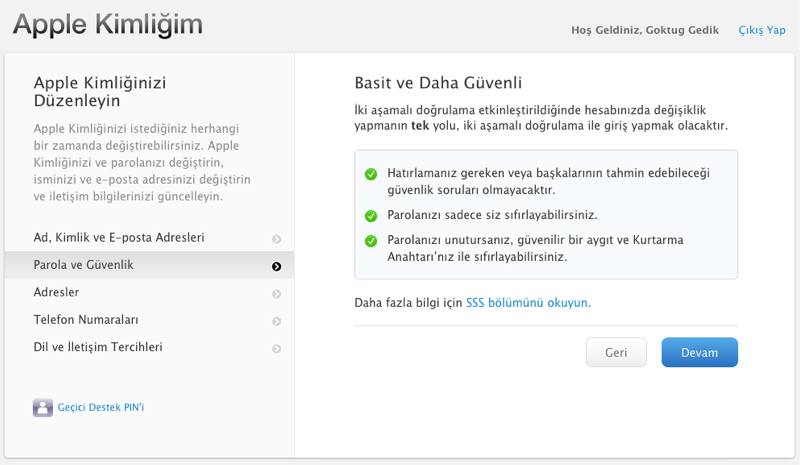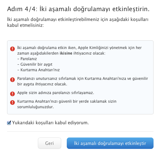 Tebrikler, artık iki aşamalı doğrulama sizin Apple kimliğiniz için etkinleştirildi. 🙂