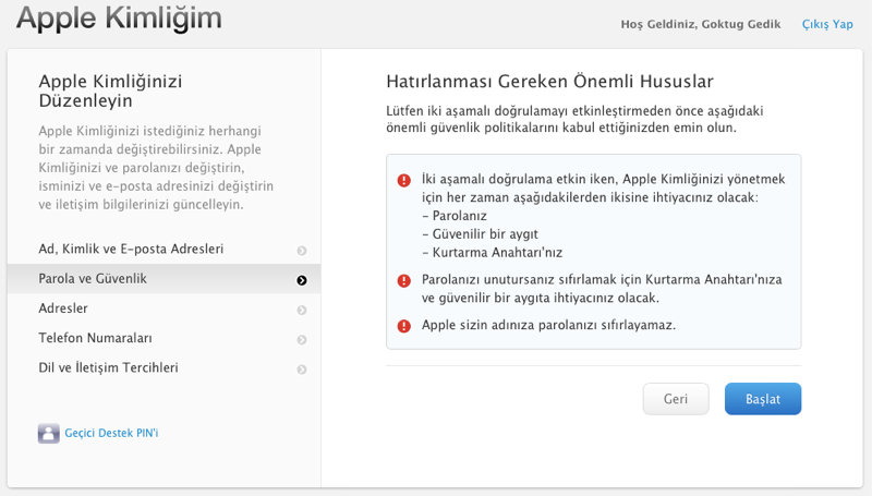 Şimdi gelelim, iki aşamalı doğrulamayı nasıl kullanmaya başlayacağımıza, ve daha güvenli bir Apple kimliğine sahip olacağımıza… 🙂