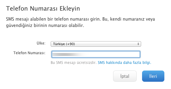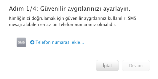 Ve şimdi asıl adımlara başlıyoruz. Bu ekran öncelikle bir telefon eklememiz gerekiyor. Apple ilk kontrolü böyl sağlıyor.
