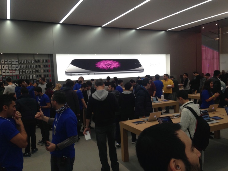 Bu sebeple açılışa gelen çoğu kişinin amacı Apple Store’u görmekten çok iPhone 6 veya iPhone 6 Plus almaktı diyebilirim. 🙂 Ancak eğer sabahtan sıraya girerek iPhone 6 peşine düşmediyseniz kısa sürede, muhtemelen bugün sonuna kadar, iPhone 6 stoklarının yine biteceğinden eminim diyebilirim.