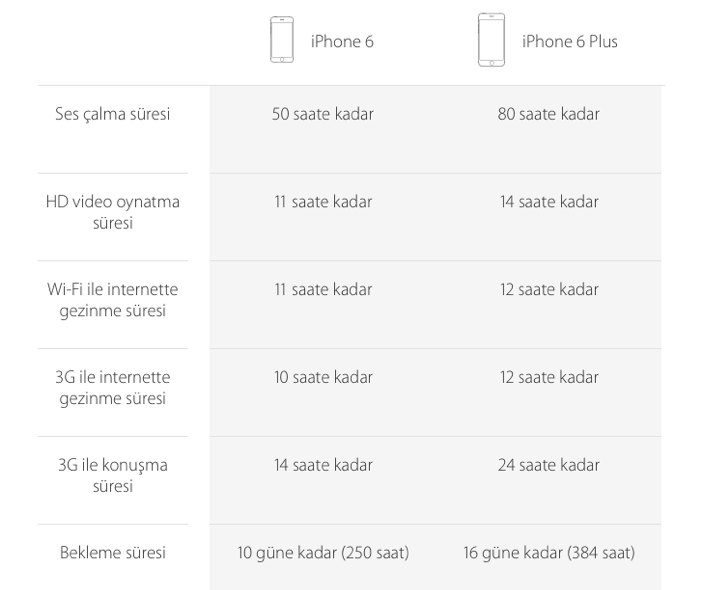 - iPhone 5’imin pil ömrü yetersiz geliyordu. Gün içinde 2 defa şarj etmeden günü bitiremez olmuştum. iPhone 6 daha iyi, ancak hala tek bir şarj ile günü tamamlamak mümkün değil. iPhone 6 Plus ise pil ömrü konusunda tam isabet! 🙂