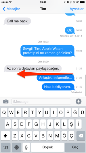 Bir konuşma içerisindeyken parmağımızla ekrandaki konuşma balonlarını sola doğru çekerek hangi mesajın ne zaman gönderildiğini görebiliyoruz. Parmağımızı çektiğimizde ise bunlar yeniden gizleniyor.