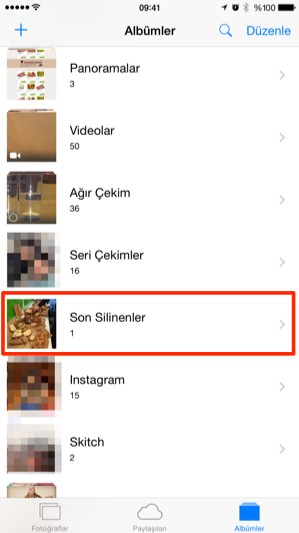 iOS 8 ile birlikte, artık çektiğimiz bir fotoğrafı silmek için sadece film rulosu içerisinden silmek yetmiyor. Silinen fotoğraflar “Son silinenler” adlı ayrı bir klasörde toplanıyor, ve 30 gün daha burada kalıyor.