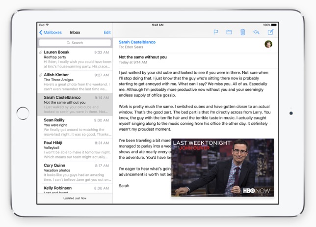 Yıllarca Microsoft tarafından dalga geçilen Apple, sonunda iPad’lerde aynı ekranda birden fazla uygulama çalıştırabilir hale geldi. Yani bir yandan maillerimizi okurken, bir pencere içinde video izleyebilecek, kenarda Twitter’ı görebilecek, veya haritadan konumumuza bakabileceğiz.