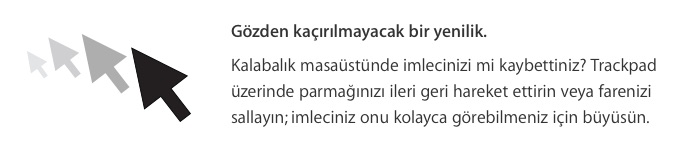 Apple da buna biraz daha yardımcı olmak için biz böyle bir “sallama hareketi” yaptığımızda imlecin büyümesini sağlamış. 🙂