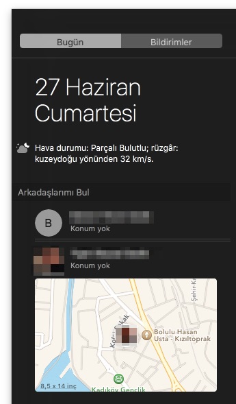 iOS cihazlarda olan “Arkadaşlarımı Bul” özelliği, birden bire karşımıza “Bildirim Merkezi” içerisinde çıktı. 🙂 Artık Mac’imiz üzerinden de izin verdiğimiz arkadaşlarımızın yerini görmemiz mümkün olabiliyor.
